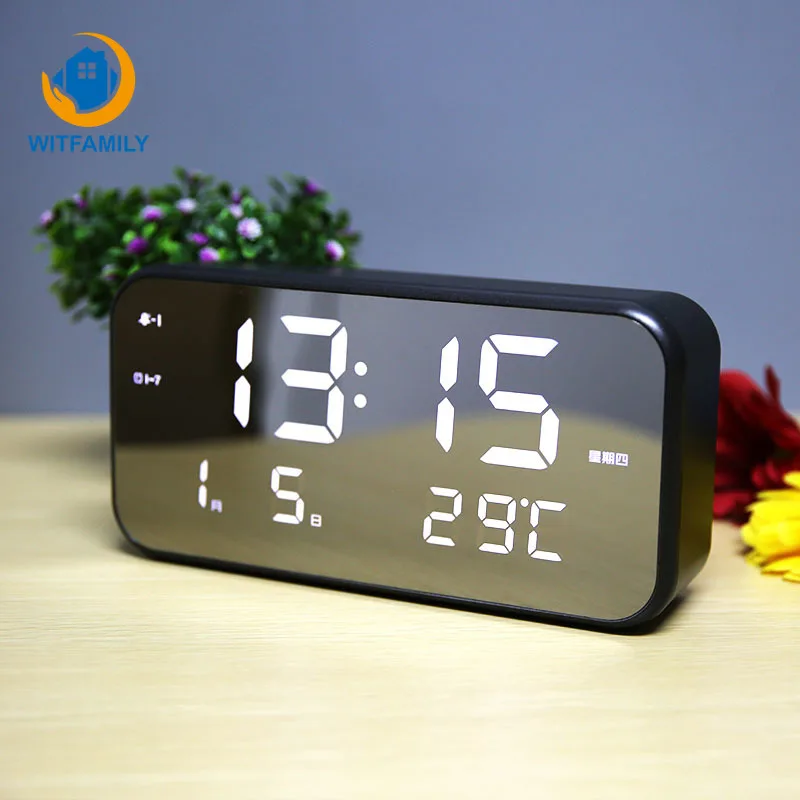 HIGH QUALITY LED Digital Electronic Nixie Clock USB charge Large Number Display Alarm Clock Mirror Watch Tempera