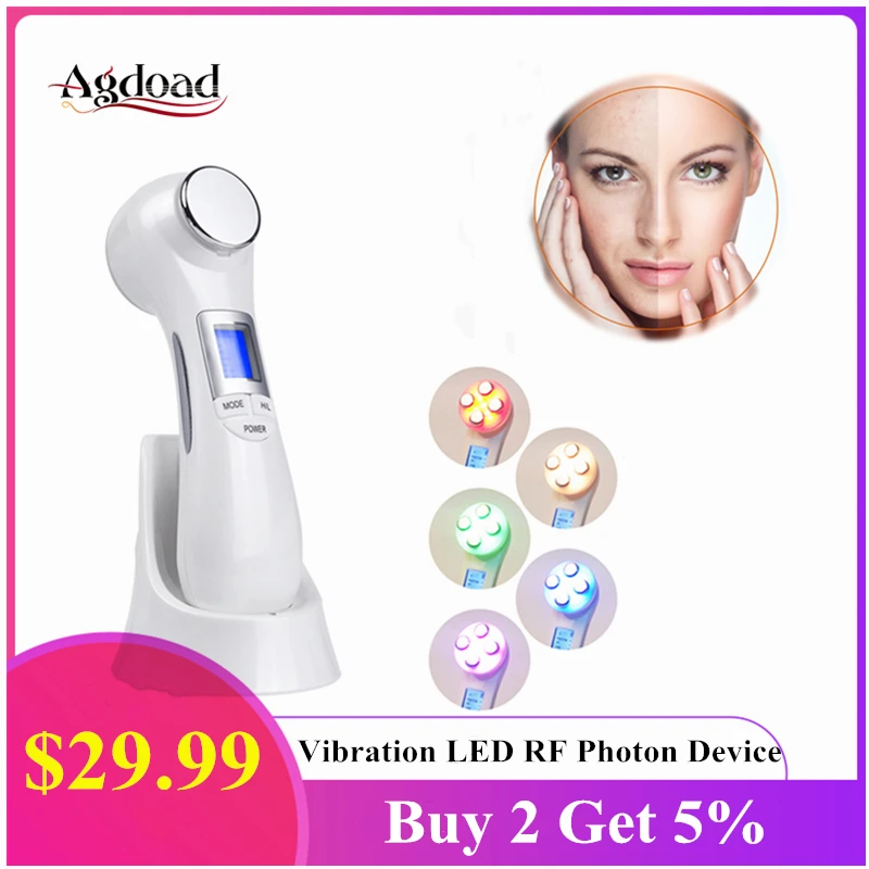 Review 6 in 1 New LED Light Therapy Facial Device Skin Rejuvenation Anti Aging Home SPA Beauty EMS RF Radi
