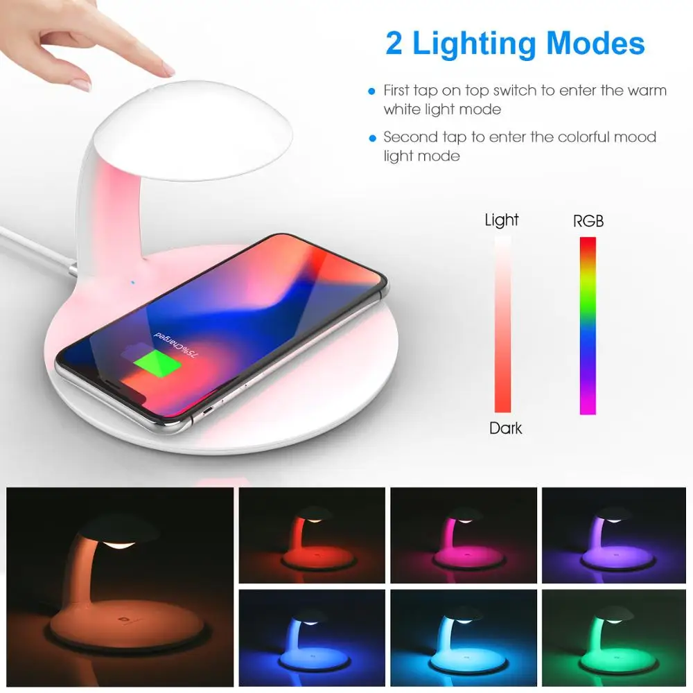 10W quick Qi Wireless Charger LED Desk Lamp For iPhone X 8 Fast Charging Pad For Samsung s9 Xiaomi